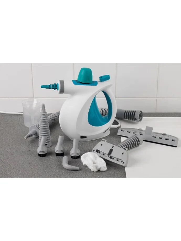 – inklusive Messbecher, Trichter, flexibeler Verlängerungsschlauch, 3 Kunststoffrundbürsten, Mini-Mopkopf und schräge Düse