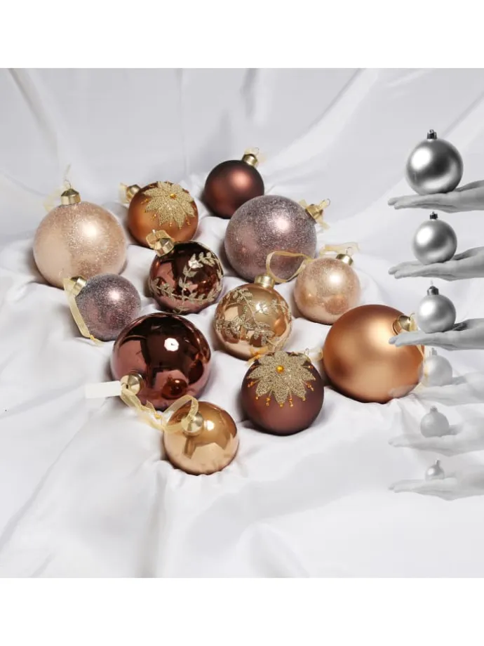 Christbaumkugel – Weihnachtsbaumkugel – Glas – 3 Größen – glänzend, matt und glitzernd – braun, karamell – 12er Set