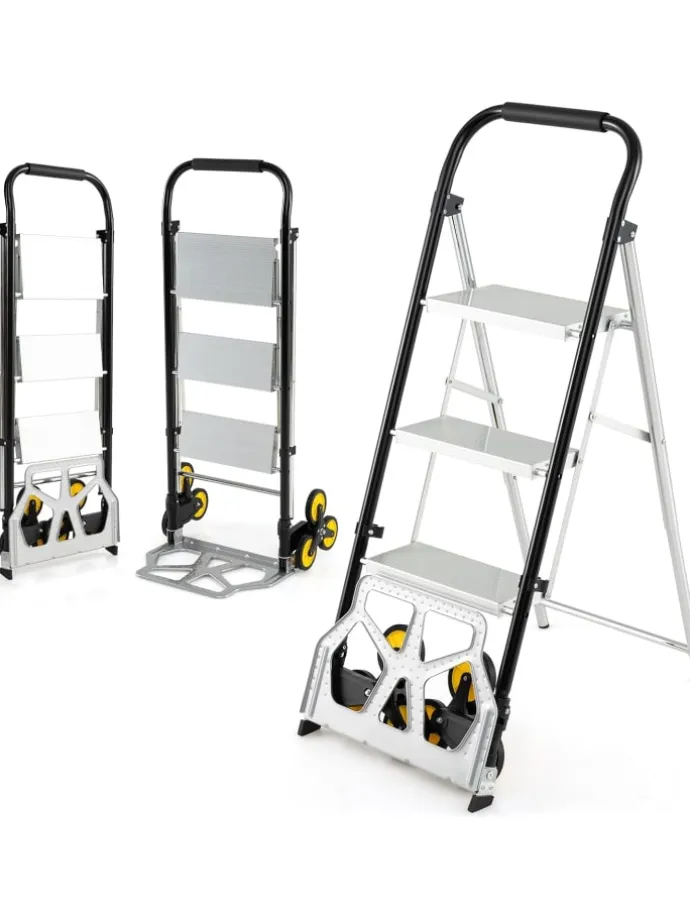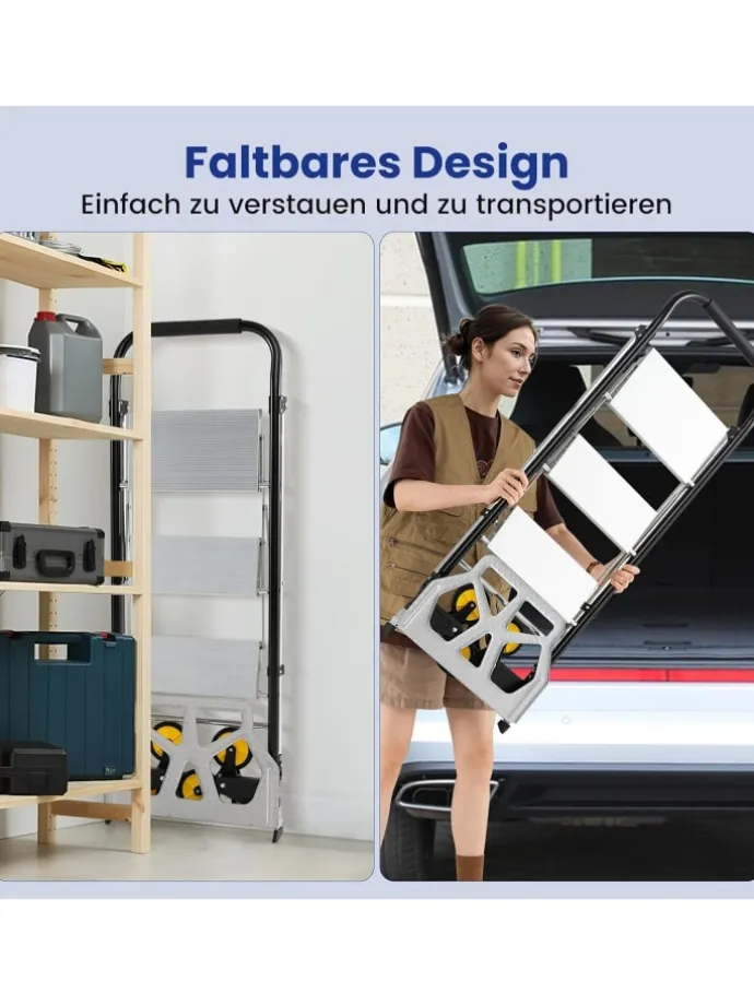 Kann flexibel als Sackkarre oder als 3-Stufen-Leiter verwendet werden