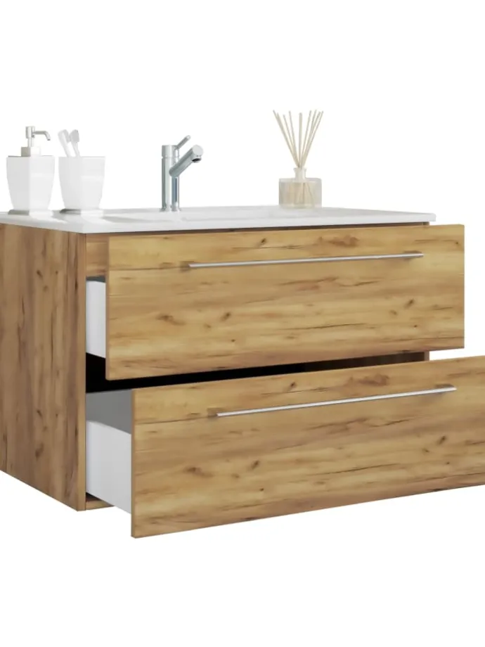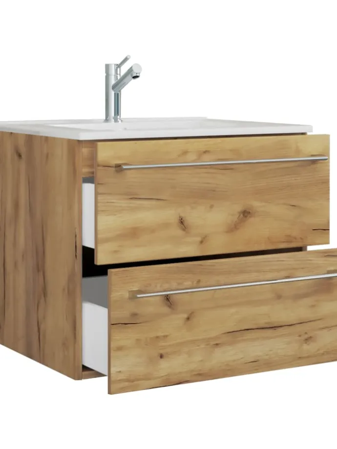 Das VCM Badmöbelset „Badinos“ ist nicht nur optisch ein absolutes Highlight. Durch das schlichte und zeitlose Design, passt das Set nahezu in jedes Badezimmer. Dank der Melamin Beschichtung sind die Badmöbel besonders pflegeleicht und unempfindlich gegenüber Feuchtigkeit.