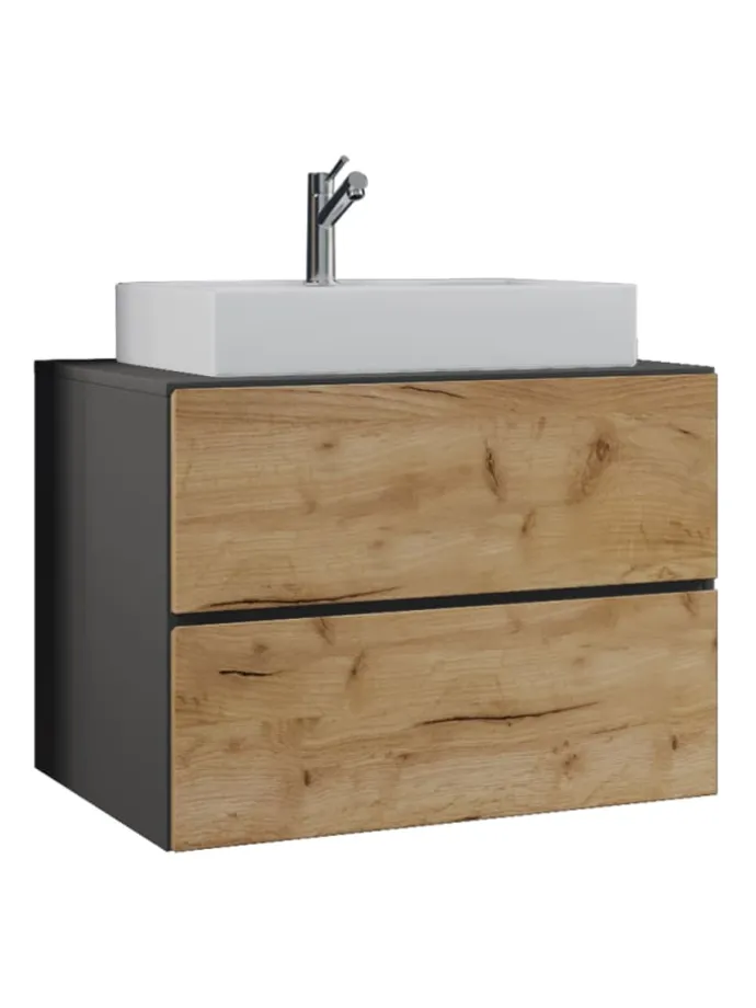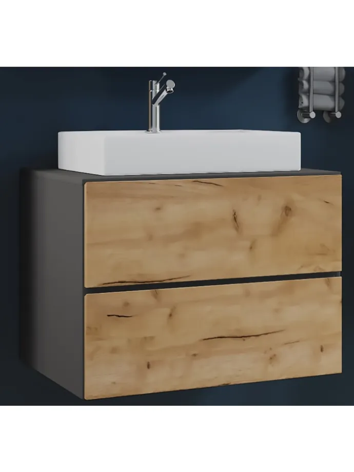 Das Badmöbel-Set besteht aus einem Unterschrank mit zwei Schubladen auf robusten Metallschienen. Das Möbel ist mit einer praktischen Push-to-open-Funktion ausgestattet.