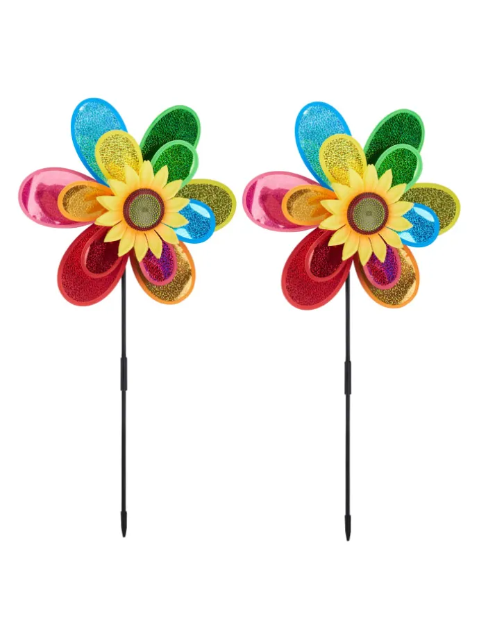 Das frühlingshafte Windrädchen im Blumen Design ist die ideale Dekoration, um karge Balkone, graue Terrassen oder farblose Gärten freundlicher zu gestalten. Einfach ins Beet oder einen Blumentopf gesteckt, ist das bunte Doppel Windrad ein echter Hingucker. Genieße das prachtvolle Farbenspiel, wenn das Windrad von wehenden Lüften angetrieben wird. An dem Windspiel 2er Set können sich Kinder und Erwachsene gleichermaßen erfreuen. Nimm die Windmühle auch mit zum Camping oder an den Strand.