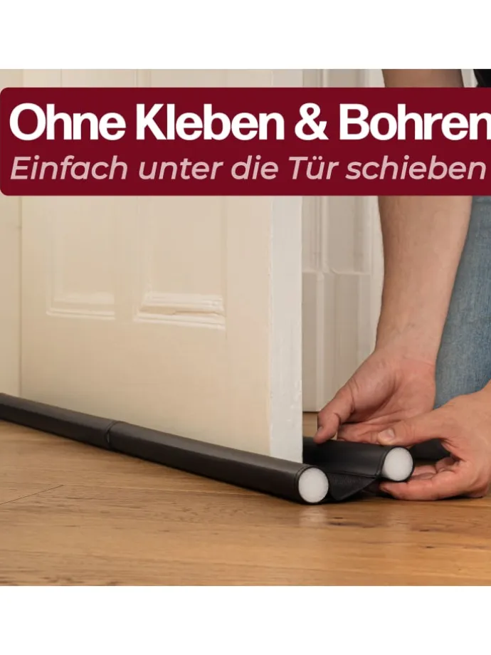 Zuschneibarer Luftstopper einfach unter Tür schieben und fertig.