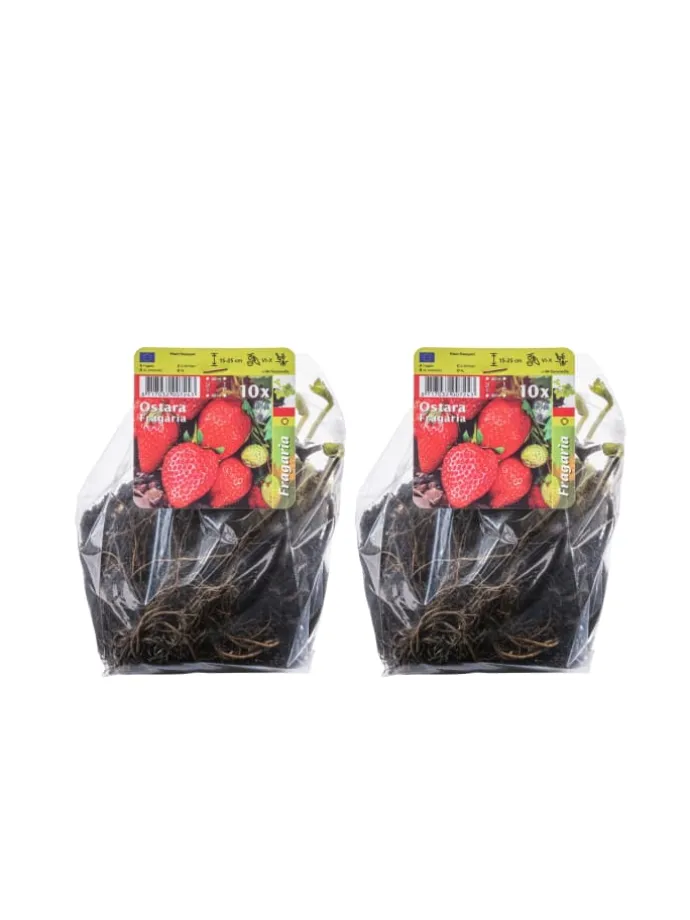 Wählen Sie ein Set mit 20 Erdbeer-Frigo-Pflanzen (Fragaria Ostara) – perfekt, um sofort eine reichhaltige Ernte in Ihrem Garten zu starten.