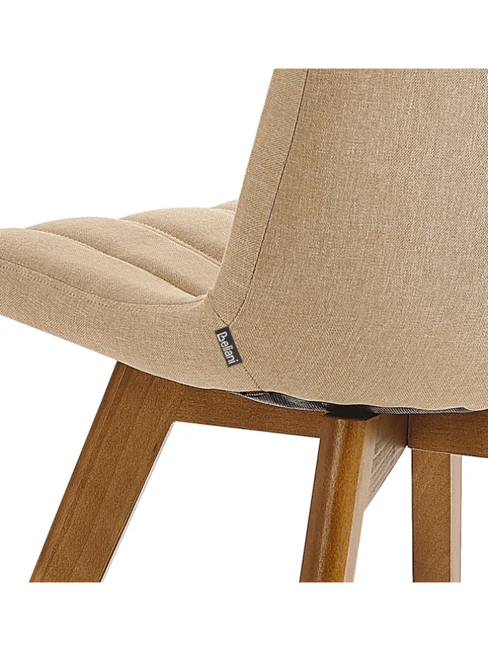 Eleganter Polsterstuhl im 2er Set mit formschöner Sitzschale. Bringen Sie mit diesem Sitzmöbel Set ein bisschen Retro-Charme in Ihren Essbereich. Die formschönen Sitzflächen bestehen aus robustem Metall, das mit weichen Schaumstoffpolsterungen ergänzt wird. So wird nicht nur für die Langlebigkeit der Sessel, sondern auch für einen entsprechenden Komfort gesorgt. Die Stoffpolsterung ist besonders pflegeleicht, sowie strapazierfähig und passt perfekt zum dunklen Ton der massiven Buchenholzbeine. Das Design der Stühle wird zusätzlich durch die klassischen vertikalen Nähte unterstrichen.