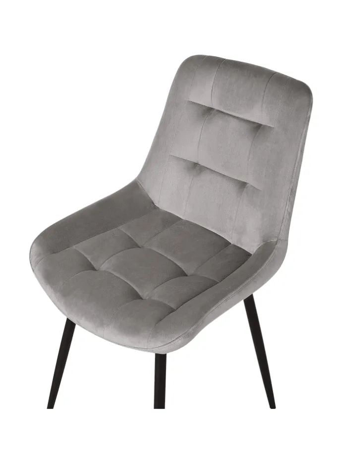 Moderne Stühle im 2er-Set aus Samt in zeitlosem Grau. Dieses bequeme Set ist für die gemeinsame Zeit beispielsweise beim Abendessen unerlässlich. Die Sitzschalen bestechen nicht nur mit ihrer schönen Form und Steppung, sondern auch mit ihrer weichen Polsterung, die optimalen Sitzkomfort verspricht. Der Bezug der Stühle besteht aus pflegeleichtem Samt und die schlanken schwarzen Metallfüße bieten Stabilität als auch Standfestigkeit.