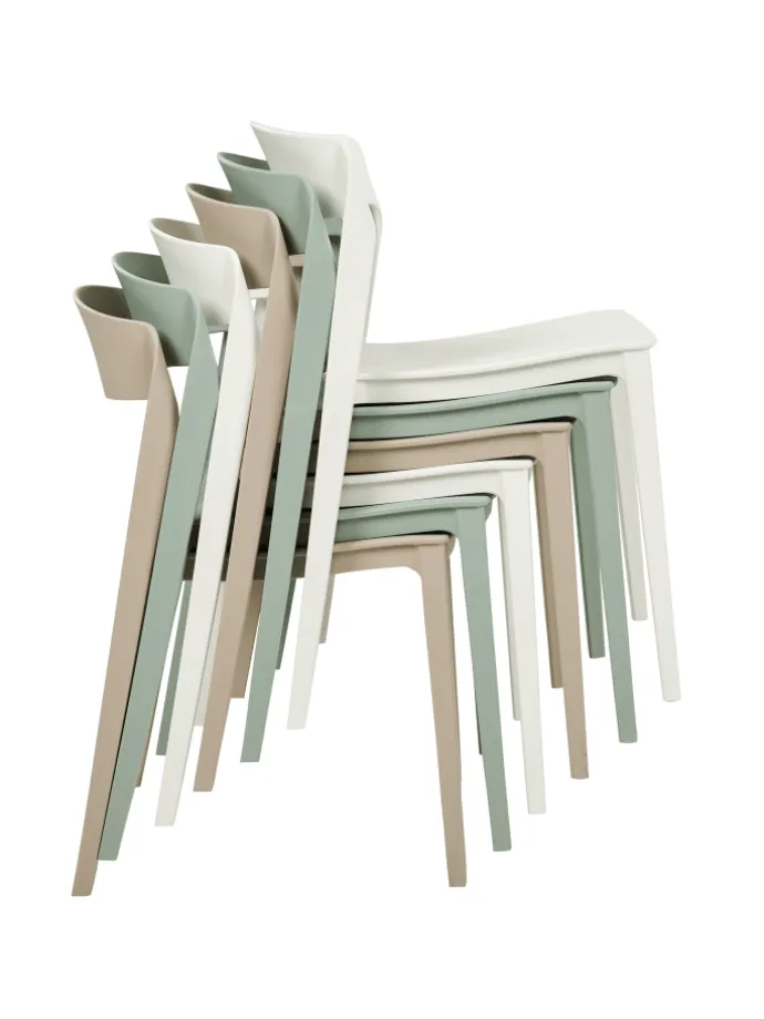 Ausgezeichneter Komfort, Modernes Design, Passt wunderbar zu jedem Einrichtungsstil, Leichtes und zugleich strapazierfähiges Material, Platzsparend stapelbar