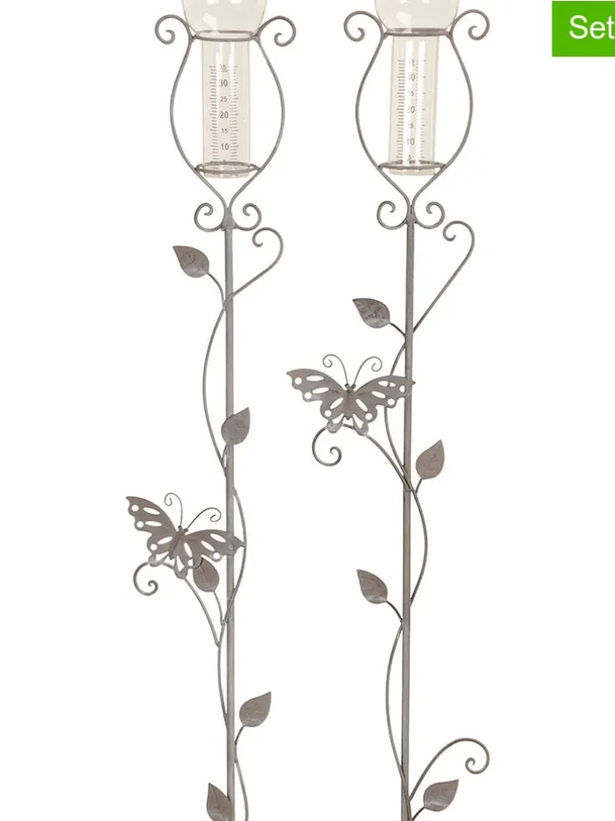 – 2 Gartenstäbe mit Regenmesser