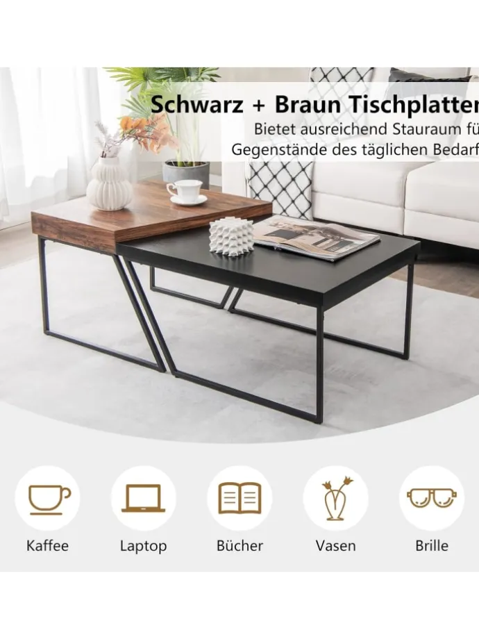 Trinken Sie am Nachmittag einen leckeren Kaffee mit unserem 2er-Set Couchtische! Die geräumige Tischplatte bietet Platz für alles, was Sie schnell erreichen möchten. Wenn Sie diese 2 Couchtische zusammenstellen, erhalten Sie eine doppelte Ablagefläche.