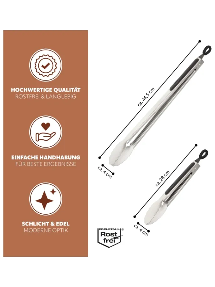 • zwei verschieden lange Grillzangen je nach Bedarf