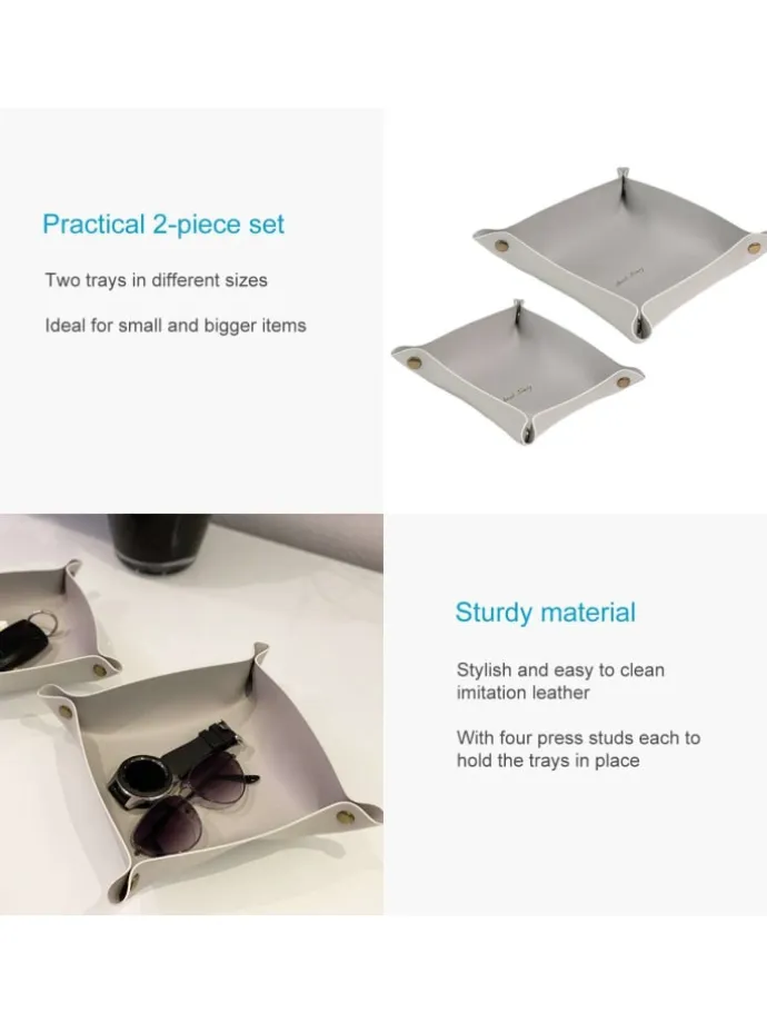 Entdecken Sie die perfekte Lösung zur Organisation Ihrer kleinen Alltagsgegenstände mit unserem Set aus zwei Taschenleerern aus hochwertigem Kunstleder. Diese eleganten Organizer in unterschiedlichen Größen eignen sich ideal für vielfältige Einsatzmöglichkeiten, sei es in verschiedenen Räumen Ihres Zuhauses oder als durchdachtes Geschenk für Ihre Liebsten.