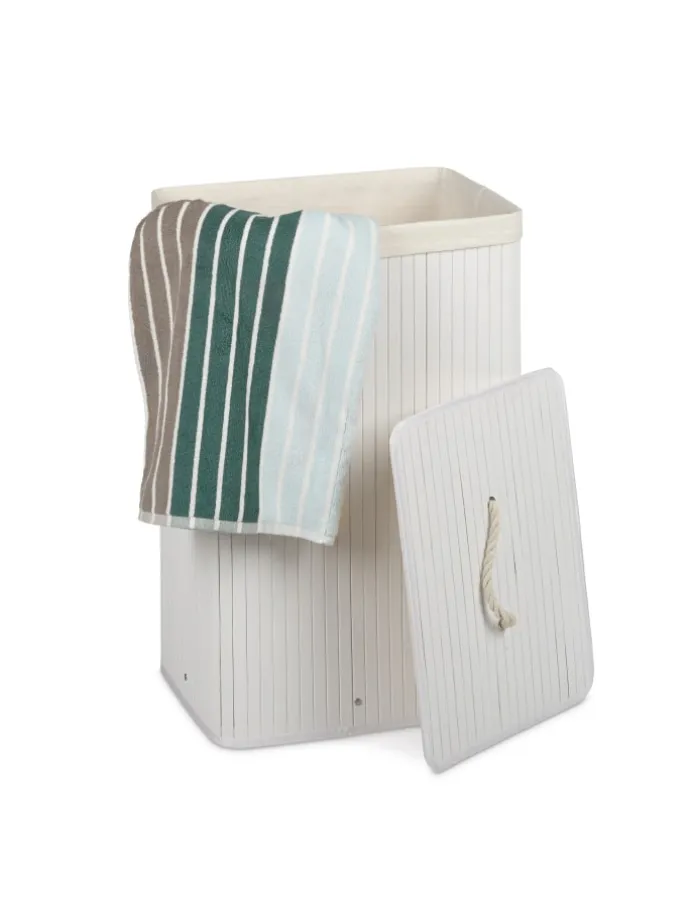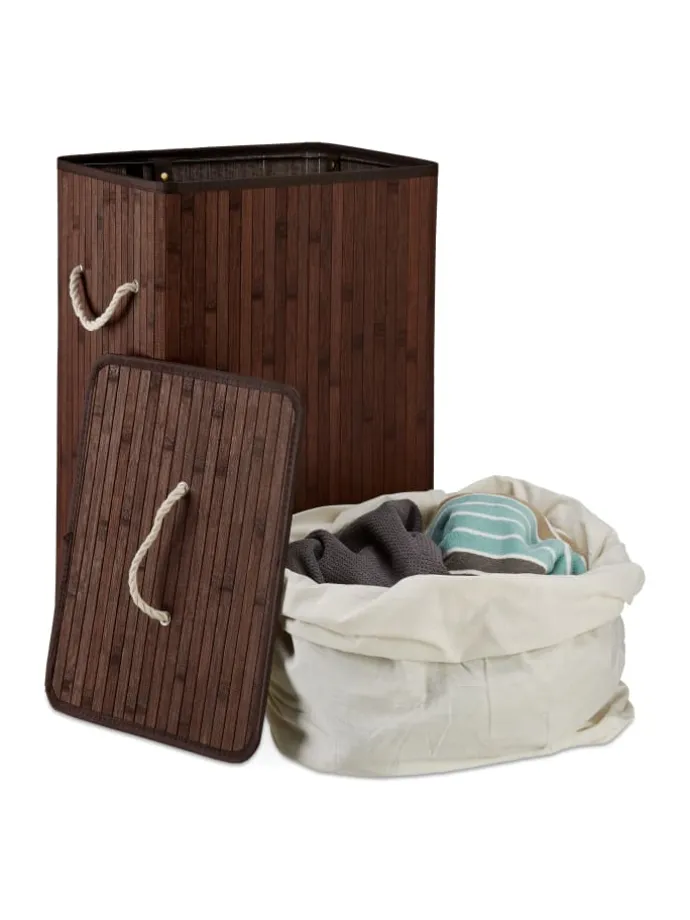 Der verwendete Bambus macht die Wäschekisten pflegeleicht und widerstandsfähig. Da Bambus auf eine gewisse Feuchtigkeit angewiesen ist, eignen sich die Wäschekörbe ideal für Badezimmer, Küche oder Keller. Belüftungslöcher im Boden beugen zusätzlich Schimmel vor. Im herausnehmbaren Wäschesack bringen Sie Ihre Schmutzwäsche problemlos zur Waschmaschine.
