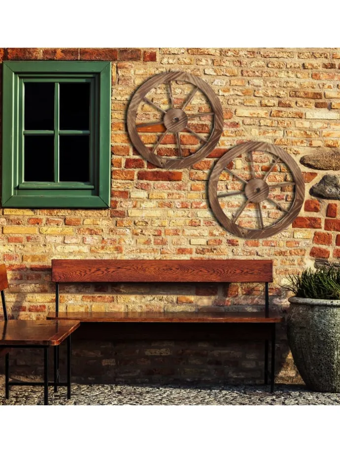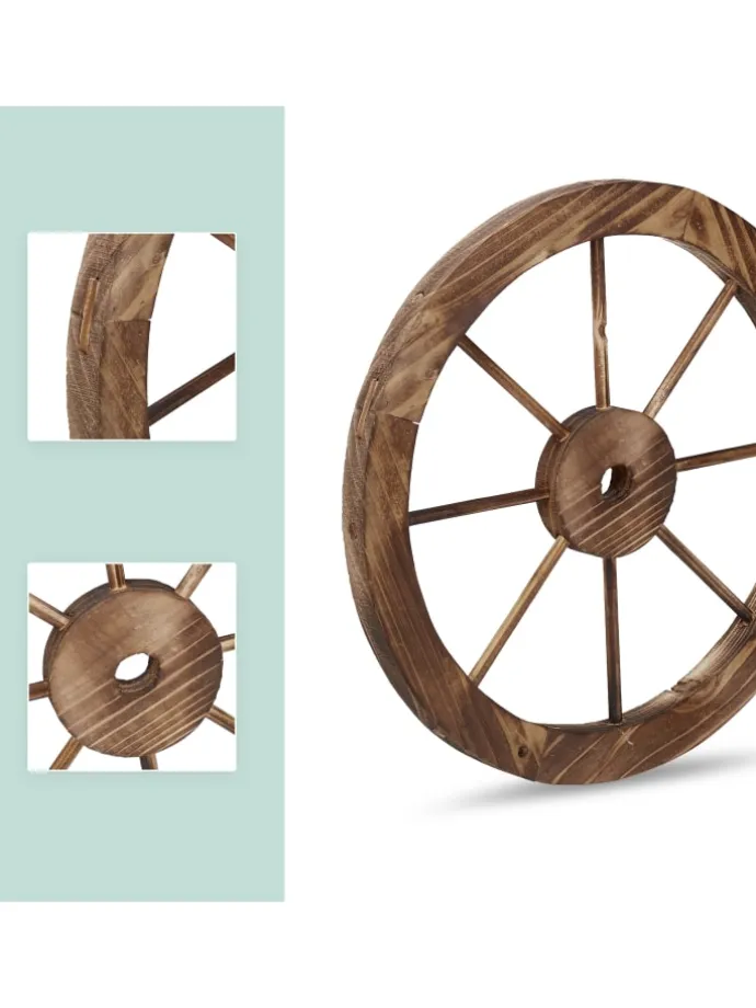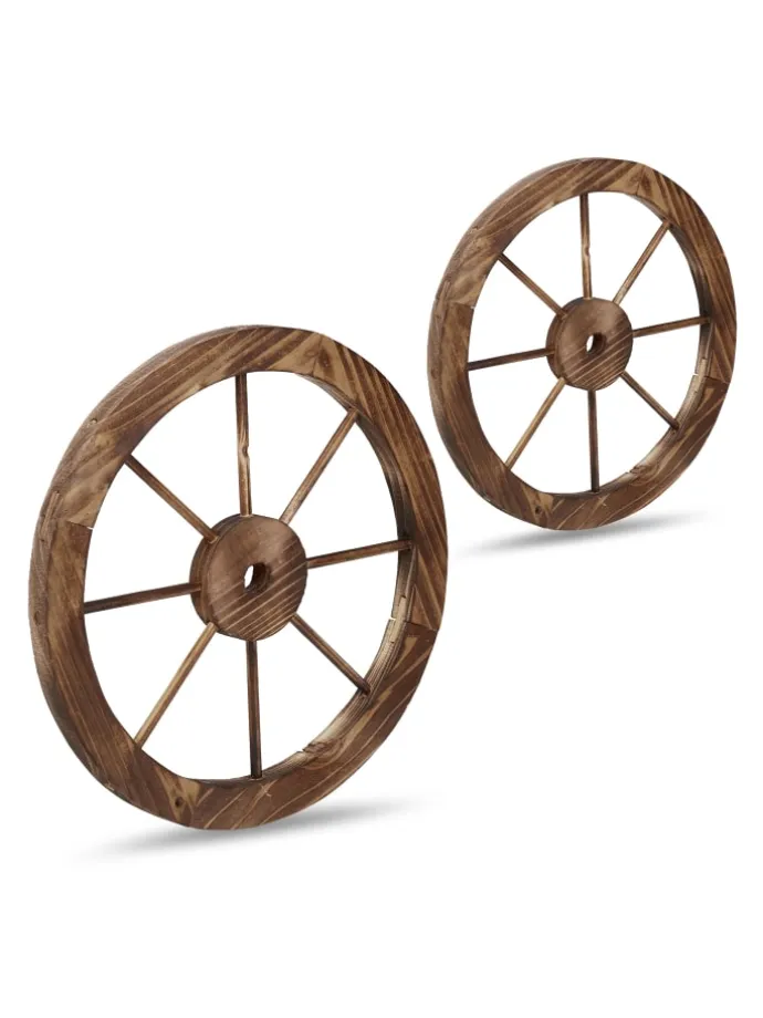 Mit diesen Wagenrädern aus Tannenholz im praktischen 2er Set schaffst Du eine eindrucksvolle Dekoration für Garten, Terrasse oder Wand. Die geflammte Oberfläche verleiht den Holzrädern einen rustikalen Vintage-Charme. Ob als Wanddeko im Saloon oder als Deko auf Hochzeiten, Bauernmärkten und Themenfesten – die großen Heuwagenräder setzen markante Akzente und passen perfekt zu Western-Themen und naturnahen Gestaltungsideen.