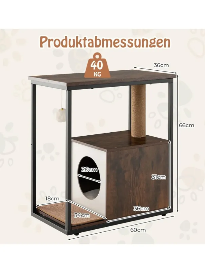 Kann als Beistelltisch, Katzenhaus oder Katzenspielplatz mit Spielball verwendet werden