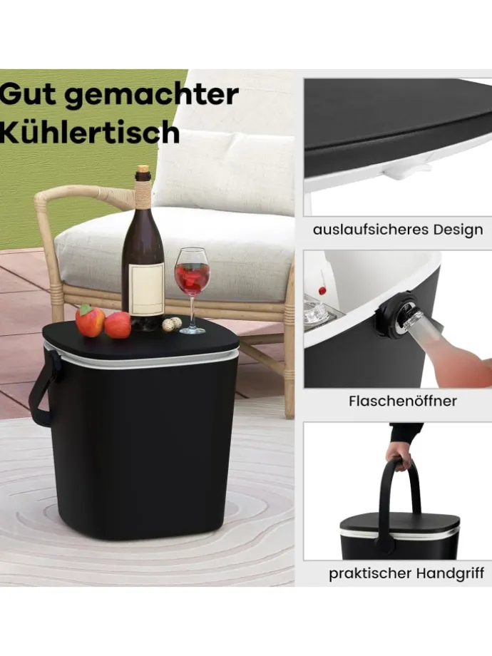 Multifunktional: Der 3-in-1-Eiskübel verfügt über eine leicht anhebbare Tischplatte, die sich perfekt als Beistelltisch, Cocktailtisch oder Eiskübel für eine Vielzahl von Anlässen verwenden lässt. Die Höhe des Deckels lässt sich durch einfaches Drücken des Verriegelungsknopfes einstellen.