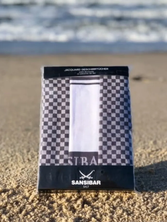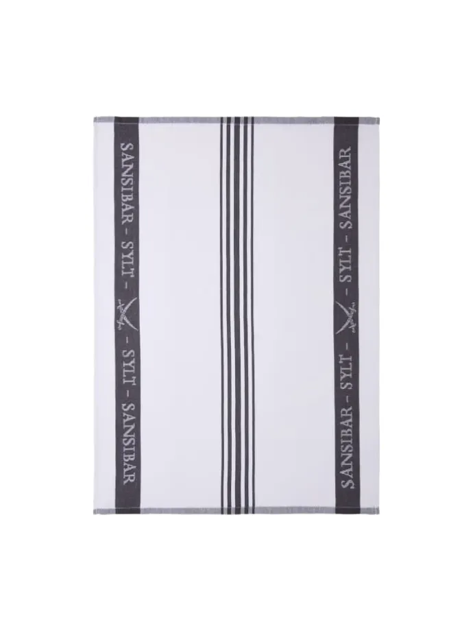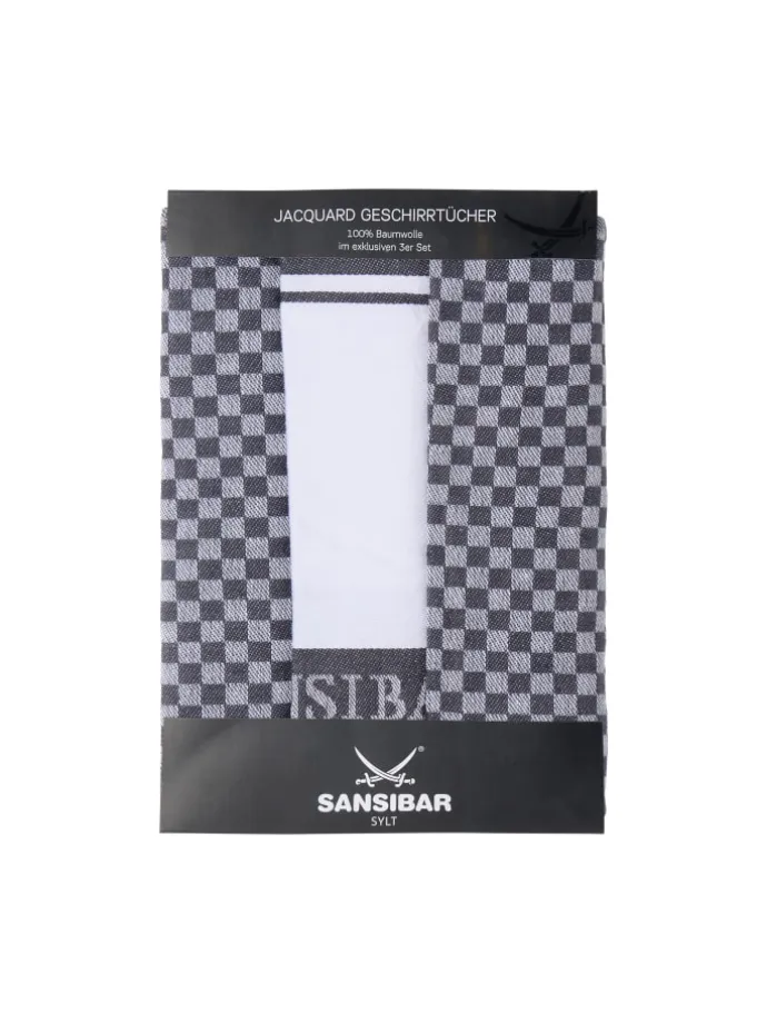 • Erstklassig verarbeitetes 3er Set Geschirrtücher mit gewebtem Sansibar Säbel-Schriftzug