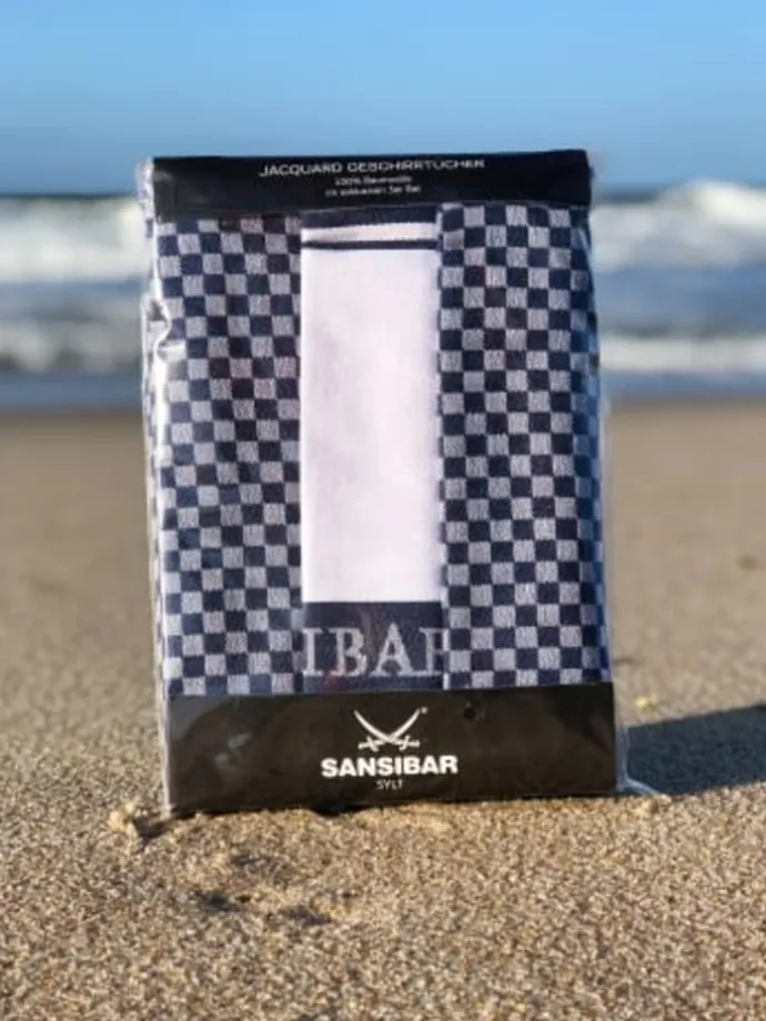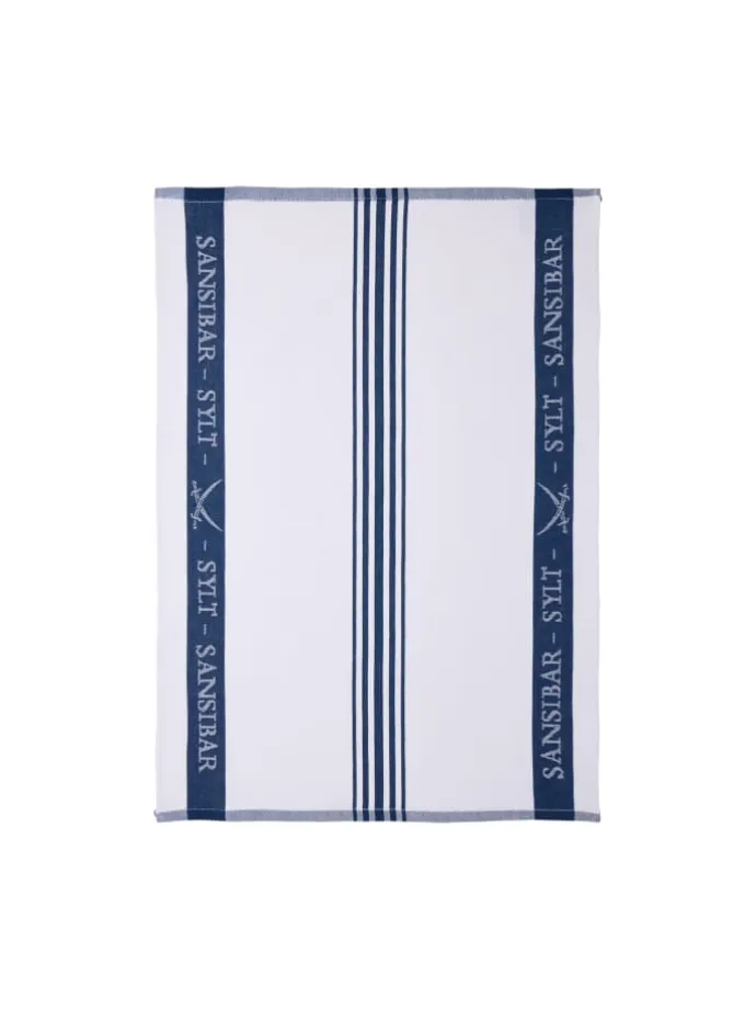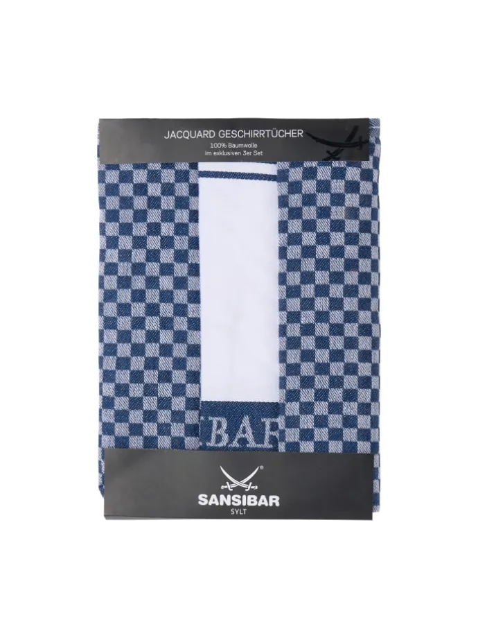 • Erstklassig verarbeitetes 3er Set Geschirrtücher mit gewebtem Sansibar Säbel-Schriftzug