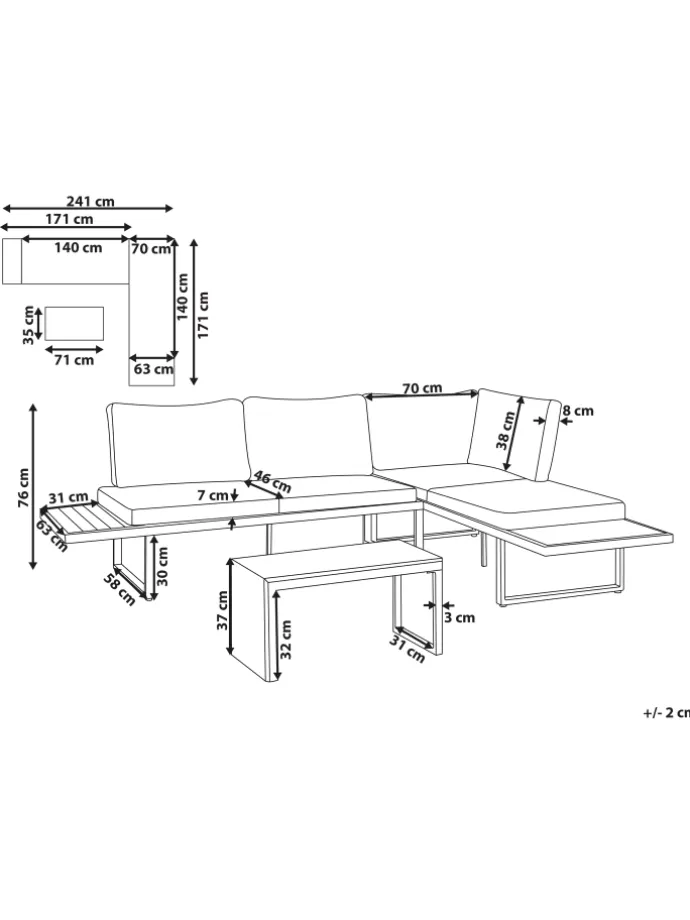 Niedrige und tiefe Sitzfläche, Moderne Terrassen- und Gartenmöbel, Hohe Qualität, Pflegeleichtes und strapazierfähiges Material, UV-Beständigkeit Klasse 4 (ISO 105-B05), Abnehmbare und feuchtigkeitsabweisende Kissenbezüge