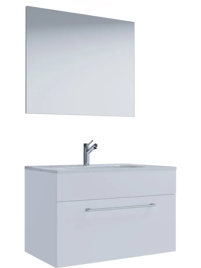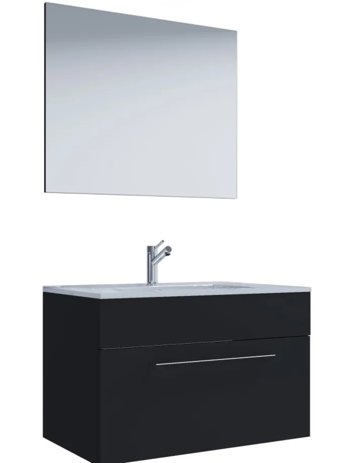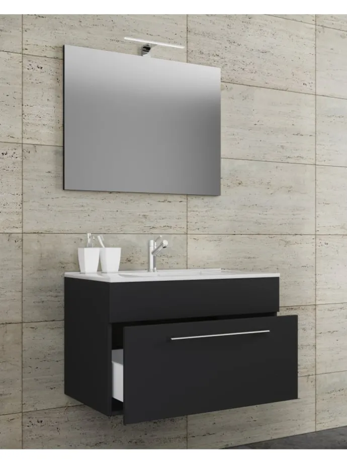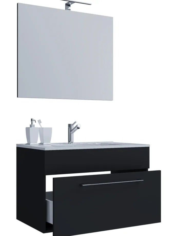 Das Badmöbel-Set besteht aus einem Unterschrank mit einer Schublade.