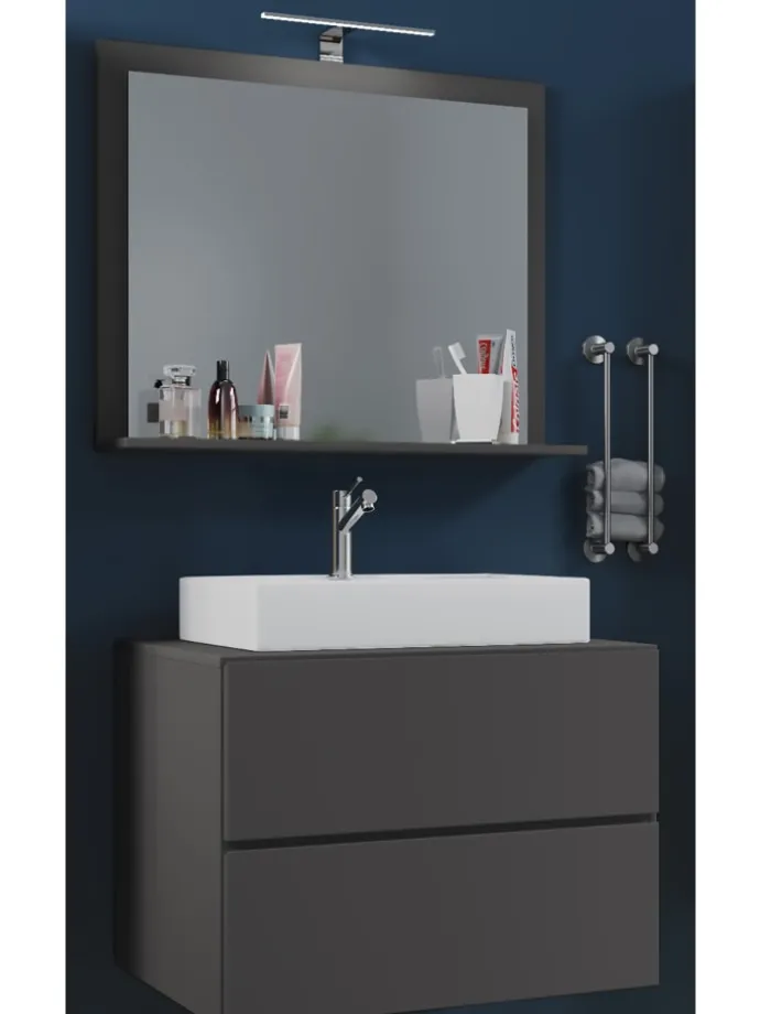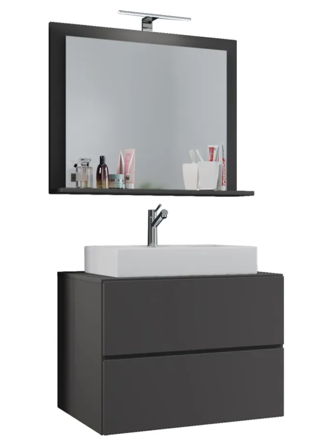 – Set: 1 Unterschrank mit 2 Schubladen, 1 Waschbecken, 1 Spiegel