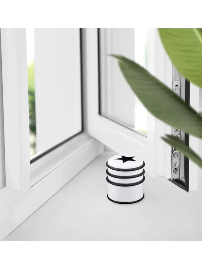 Sorge mit dieser Türzuschlagsbremse für eine praktische Lösung gegen unbeabsichtigtes An- und Zuschlagen von Türen oder Fenstern. Dank des schweren Eigengewichtes des Türstoppers ist ein stabiler Stand auf allen Böden garantiert. Die gummierte Unterseite verhindert das Wegrutschen der Türbremse und die umlaufenden Gummiringe beugen Beschädigungen an Türen und Möbeln vor. Darüber hinaus überzeugt der Türaufhalter mit seinem tollem Stern-Motiv und fügt sich ideal in Wohn- oder Schlafzimmer ein.