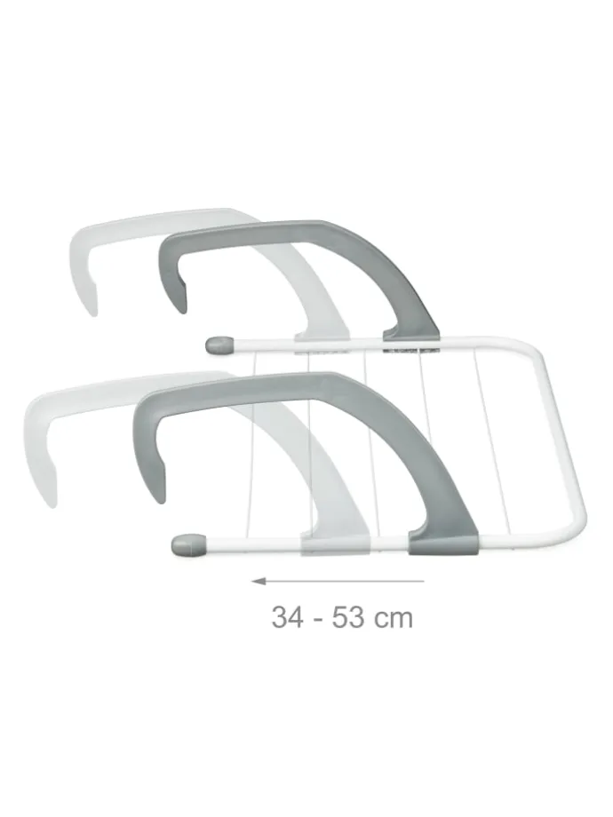 Mit den Hängetrocknern lassen sich Handtücher, Socken und Unterwäsche platzsparend an der Heizung oder dem Balkongeländer trocknen. Die Heizungstrockner zum Einhängen sind im Nu montiert und bieten ausreichend Platz für kleine Wäscheladungen. Die variablen Aufhängebügel lassen sich an den Heizkörper oder das Geländer anpassen und auch einklappen, sodass die Hängewäscheständer nach Gebrauch bequem verstaut werden können.