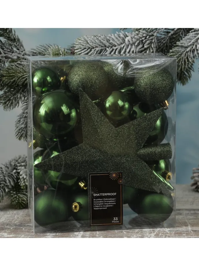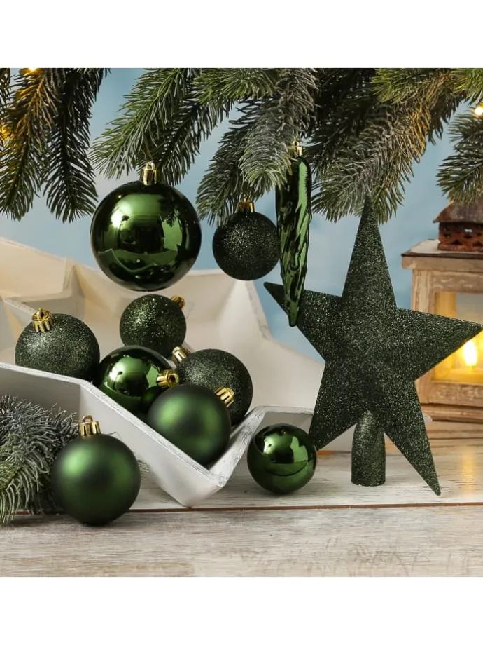Wir wünschen dir viel Freude beim Dekorieren mit diesem wunderschönen 33-teiligen Weihnachtsbaumkugel-Set in Grün!