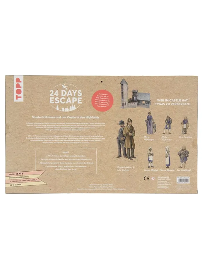 Sherlock Holmes und John Watson wurden eingeladen, um sich auf die Suche nach einem lange verschollenen Familienschatz zu machen. Einen ungeklärten Fall lässt sich der berühmte Detektiv natürlich nicht entgehen und hat sich auf die Reise nach Schottland begeben. Ein großes Rätsel-Abenteuer wartet auf dich in den schottischen Highlands! Kannst du Sherlock helfen, das Geheimnis zu lüften? Der 24 DAYS ESCAPE Adventskalender sorgt nicht nur bei Holmes-Fans für eine spannende Weihnachtszeit.