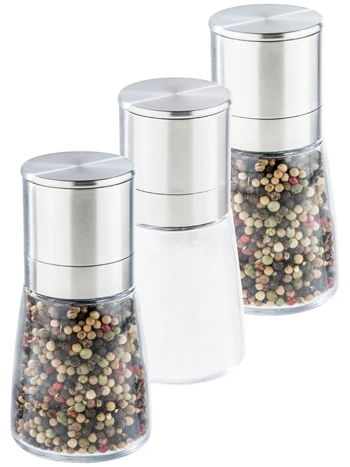 – 3 Mini-Edelstahl-Salz-/ Pfeffermühlen