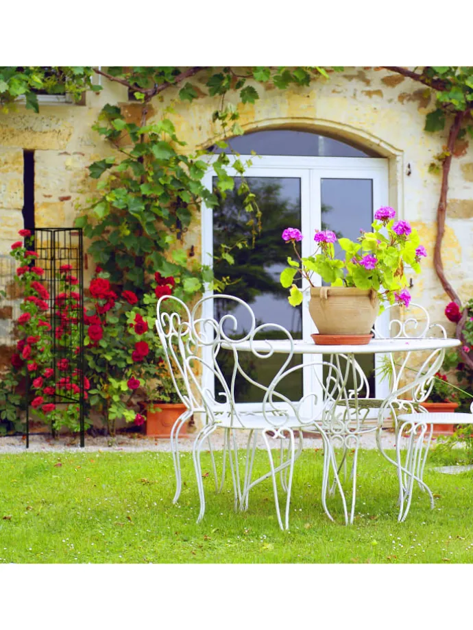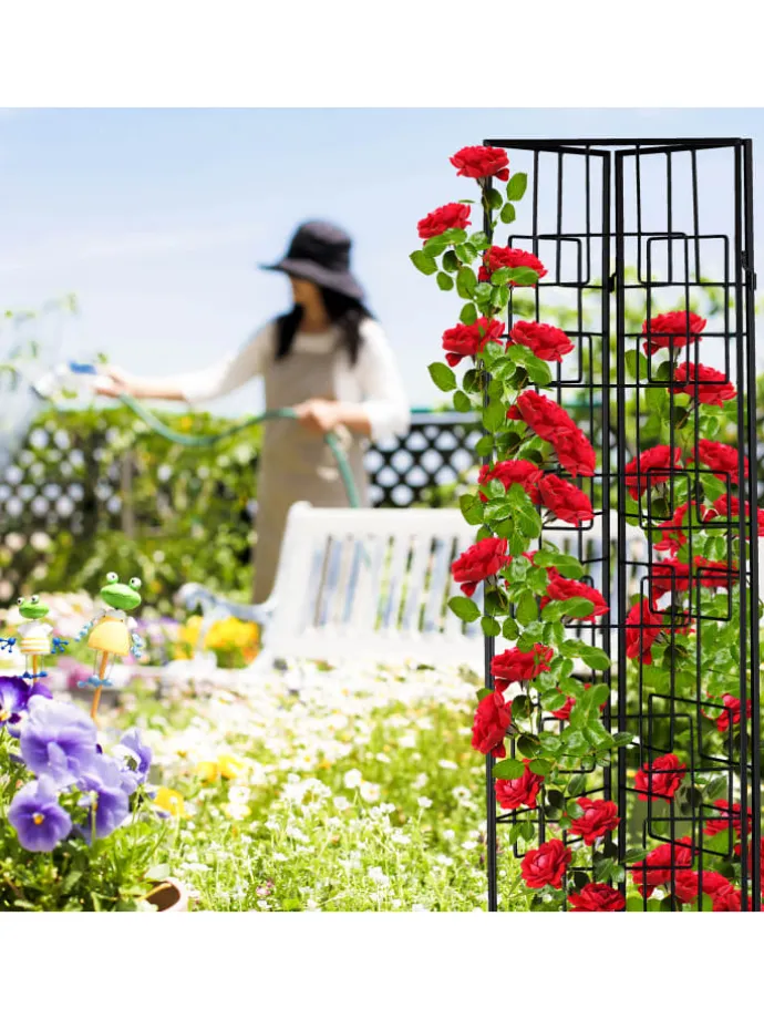 Dieses Rosengitter im 3er Set gibt nicht nur Kletterpflanzen den nötigen Halt beim Wachsen, sondern trägt mit seinen klaren Linien und Formen auch zu einer dekorativen Gartengestaltung bei. Rankpflanzen wie Efeu, Rosen, Clematis oder Wein werden mit dem Blumenspalier aus Metall gekonnt in Szene gesetzt. Entscheiden Sie selbst, ob Sie die Elemente einzeln oder gemeinsam aufstellen möchten. Die Gitter werden einfach in den Boden gesteckt und können über die Scharniere miteinander verbunden werden.