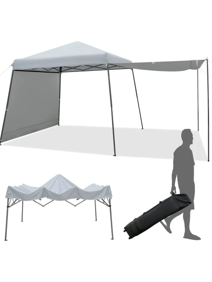 Unser sofortiges Pop-up-Pavillon mit Markisen misst 599 x 300 x 235-255 cm (L x B x H) und bietet einen großen Schattenbereich für Picknicks, BBQs, Partys, Outdoor-Aktivitäten, Camping, kommerzielle Nutzung und mehr. Es gibt auch 2 Seitenwände für zusätzlichen Schatten. Außerdem können Sie 2 Seitenwände mit 4 Stützstangen und Windseilen unterstützen und fixieren, um 2 Seiten-Markisen zu erhalten, die zusätzlichen Schatten oder Regenschutz bieten. Das Dach besteht aus silberbeschichtetem Oxford-Stoff und der Rahmen besteht aus rostbeständigem pulverbeschichtetem Metall, was eine bessere Schutzwirkung für Ihre Outdoor-Aktivitäten garantiert.