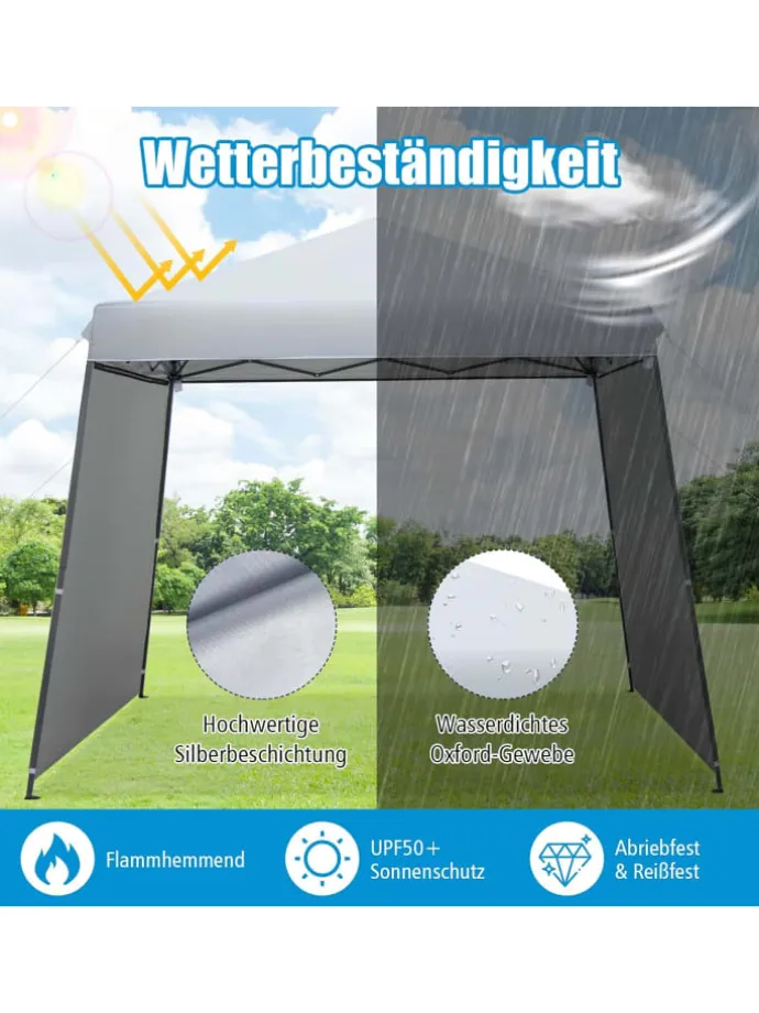 Gesamtabmessungen (schließen Sie die Markisen): 300 x 300 x 235-255 cm (L x B x H)