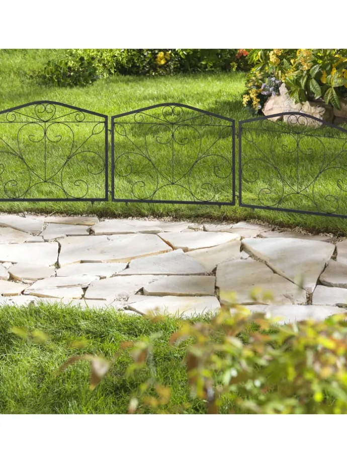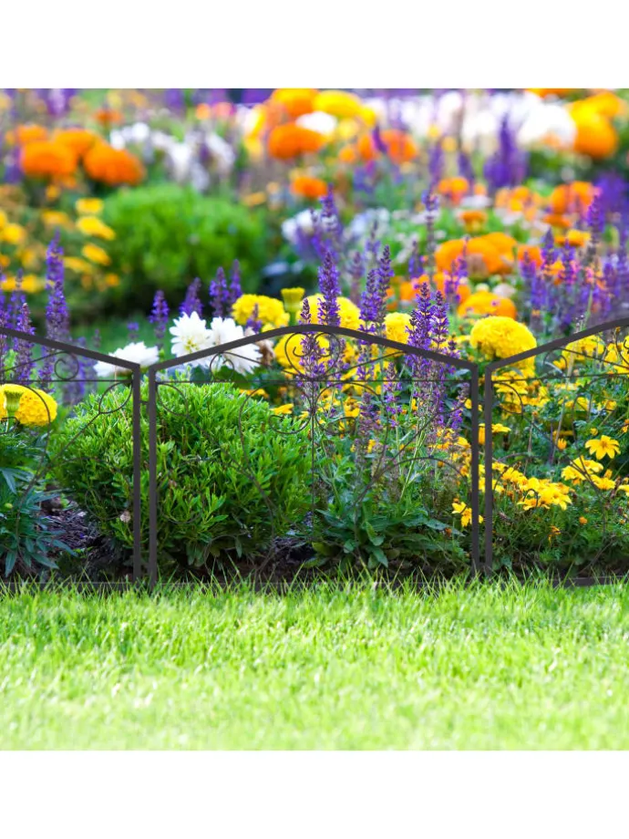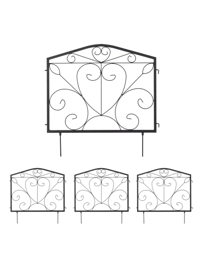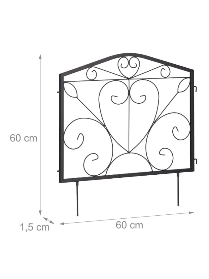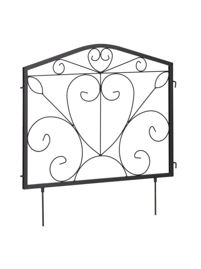 Mit dieser dekorativen Beeteinfassung gestaltest und verschönerst Du Deinen Garten schnell und einfach. Markiere die Übergänge zwischen Beeten, Grünflächen, Wegen und Rabatten mit dem Zierzaun. Dazu werden die 4 Zaunelemente mit den Erdspießen einfach in den Boden gedrückt. Die Beetbegrenzung lässt sich je nach Bedarf flexibel anordnen. Mit seinem dekorativen Design mit Verzierungen in Form von Herzen wird der Steckzaun dabei sicher zum Hingucker in Deinem Garten.