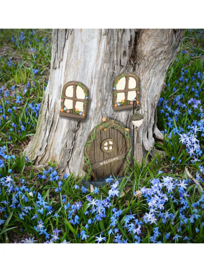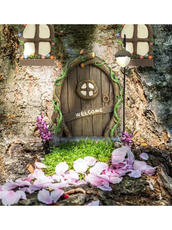 – Dekoratives Feen-Fantasie-Set aus Tür, Fenstern und Laterne