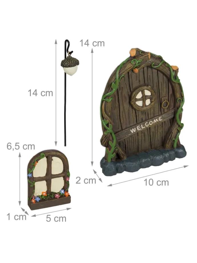 Verwandele Deinen Garten in einen Märchenwald mit der bezaubernden Feen-Gartendekoration bestehend aus Wichteltür, -fenstern und -licht. Insbesondere für Kinder ist die Gestaltung eines Wichtelbaums zum Anlocken von Feen und Elfen ein großer Spaß. Eine Eichelnuss als Laterne weist magischen Wesen den Weg und ein Türschild heißt sie Willkommen. Die vielen liebevollen Details sind aus wetterfestem Kunststein gefertigt und werden von intensiven, UV-beständigen Farben zum Leben erweckt.