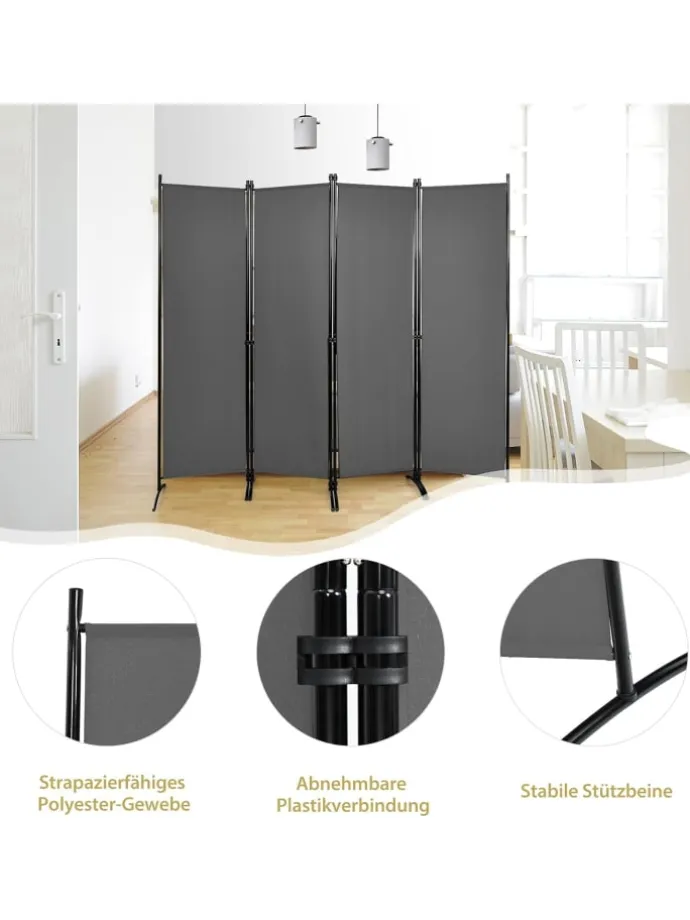 4 tlg. Raumteiler 173cm in Grau