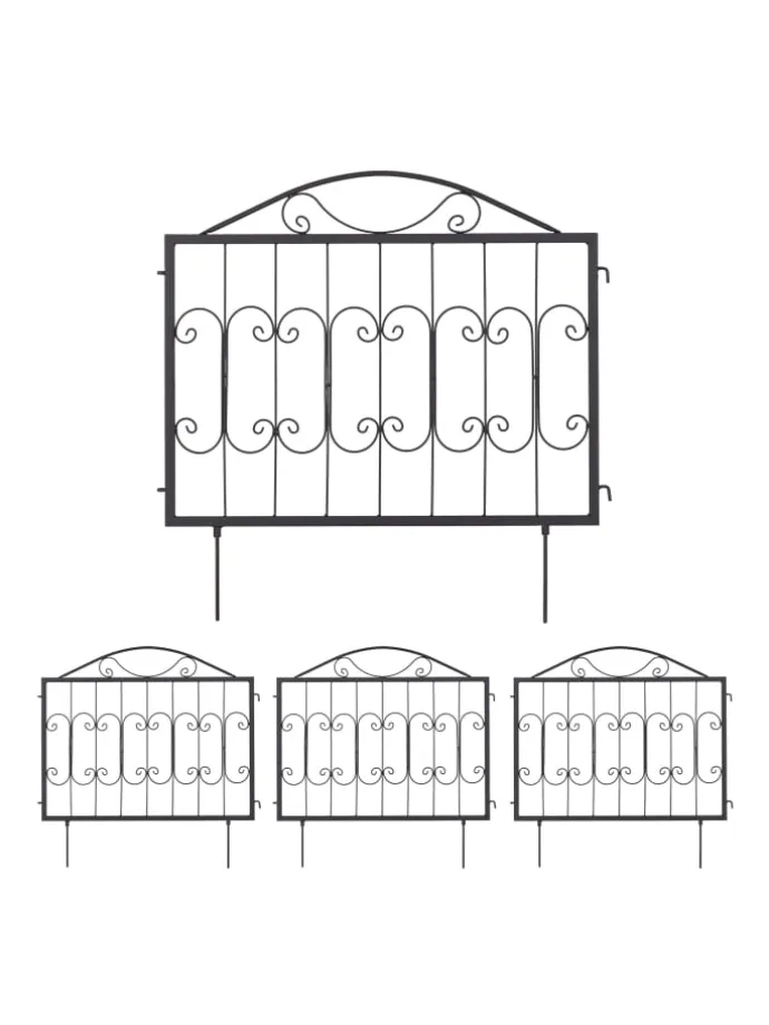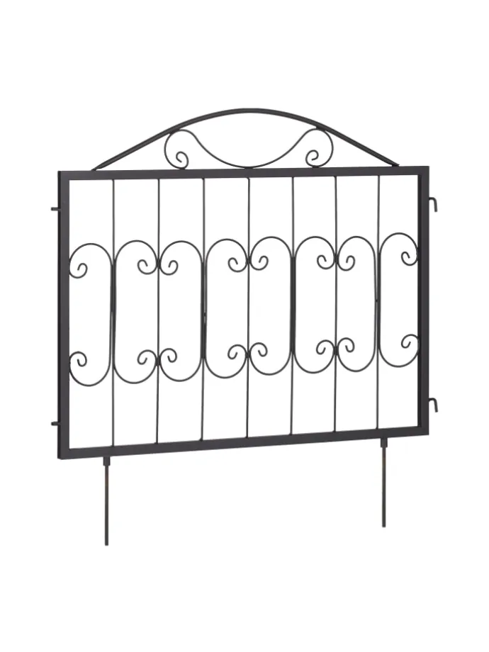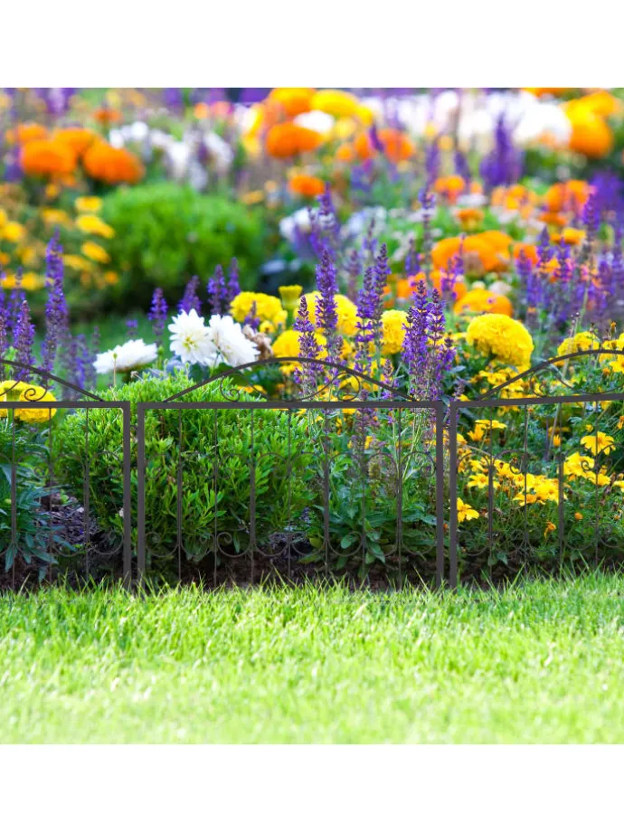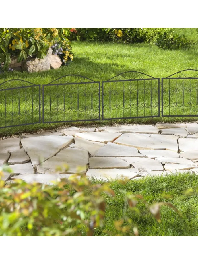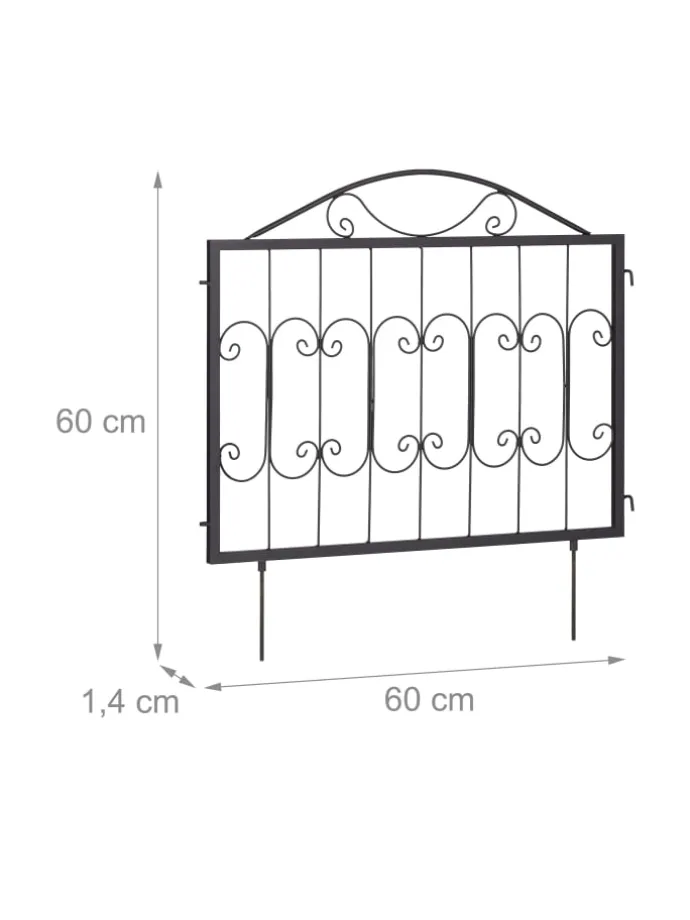 Mit dieser dekorativen Beeteinfassung gestaltest und verschönerst Du Deinen Garten schnell und einfach. Markiere die Übergänge zwischen Beeten, Grünflächen, Wegen und Rabatten mit dem niedrigen Zierzaun. Dazu werden die 4 Zaunelemente mit den Erdspießen einfach in den Boden gedrückt. Die Beetbegrenzung lässt sich je nach Bedarf flexibel anordnen. Mit dem romantischen Design mit geschwungenen Ornamenten wird der Steckzaun dabei sicher zum Hingucker in Deinem Garten.