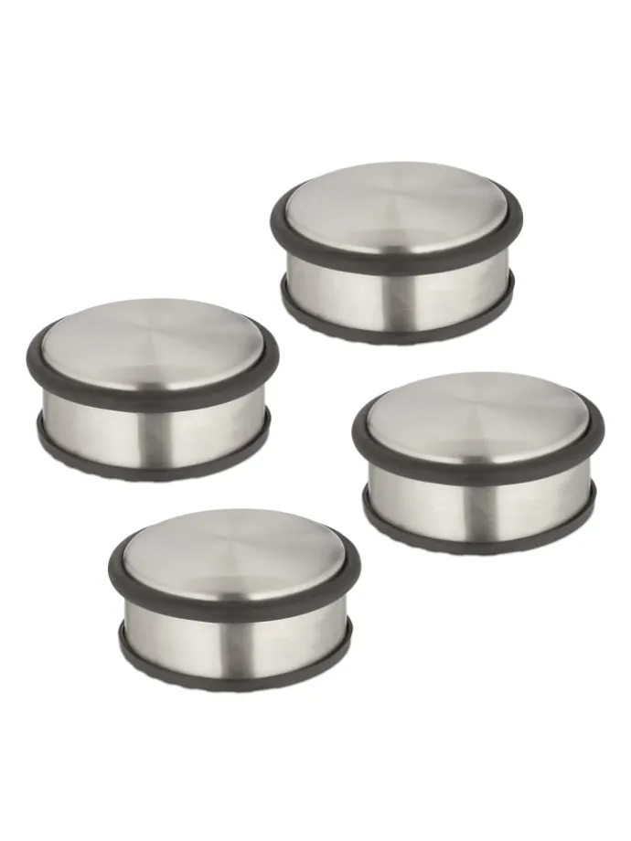Diese Türzuschlagbremse im 4er Set ist ein nützliches Accessoire für Deinen Haushalt oder das Büro. Sie verhindert das unbeabsichtigte An- und Zuschlagen von Türen oder Fenstern. Das schwere Eigengewicht des zeitlosen Edelstahl-Türstoppers sorgt dabei für einen stabilen Stand auf allen Böden. Auch die gummierte Unterseite sorgt für Standhaftigkeit und verhindert gleichzeitig das Wegrutschen des Terrassentürstoppers. Der umlaufende Gummiring beugt zudem Beschädigungen an Türen und Möbeln vor.