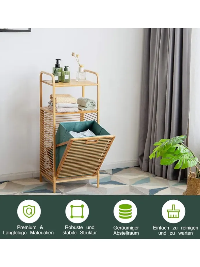 Werfen Sie einen Blick auf unseren ausklappbaren Wäschekorb! Hergestellt aus umweltfreundlichem und langlebigem Bambus ist er robust und kann lange Zeit benutzt werden. Außerdem ist er gratfrei, um Verletzungen zu verhindern und verformt sich nicht leicht. Sie können ihn nach Belieben zur Aufbewahrung von Haushaltsgegenständen im Badezimmer, in der Waschküche, in der Garderobe, im Wohnzimmer oder wo auch immer Sie ihn aufbewahren möchten, verwenden.