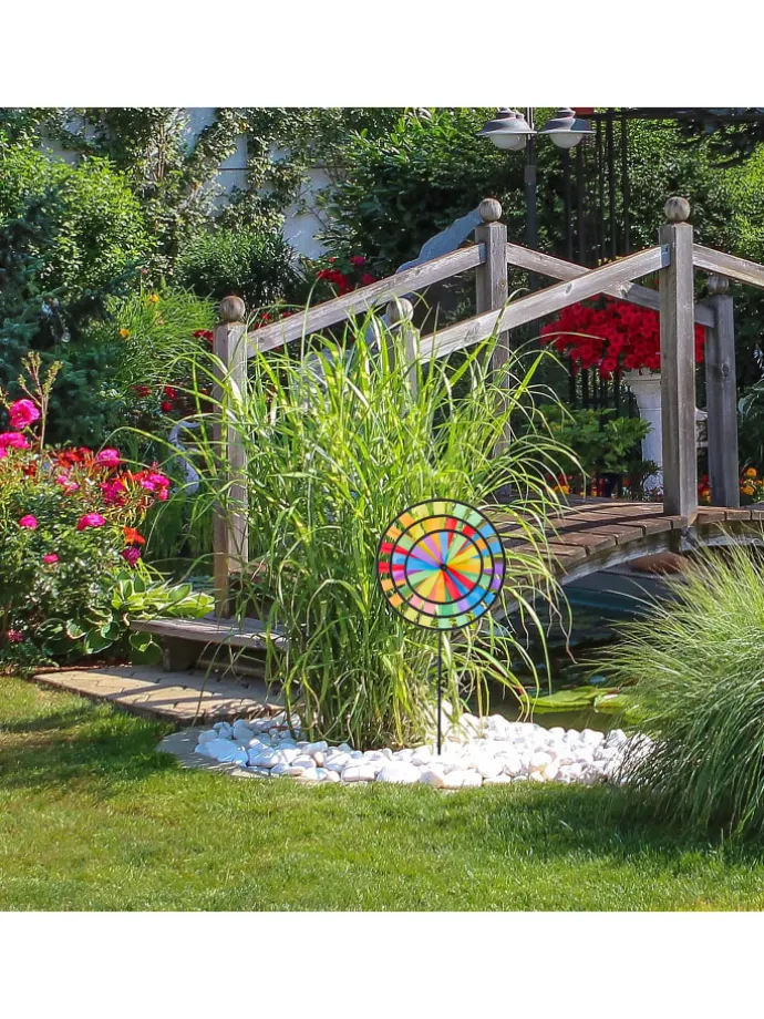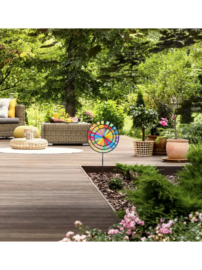 Ihr Balkon wirkt etwas karg und Sie wollen ihn mit etwas Farbe freundlicher gestalten? Dann ist dieser frühlingshafte Gartenstecker die ideale Dekoration für Sie! Einfach zusammengesetzt und in einen Blumentopf gesteckt, ist das bunte Regenbogen Design ein echter Hingucker. Genießen Sie das prachtvolle Farbenspiel, wenn das Windrad von wehenden Lüften angetrieben wird. An den optischen Eindrücken des Windspiels können sich sowohl Kinder als auch Erwachsene erfreuen. Platzieren Sie die Windmühle im Garten oder auf der Terrasse oder nehmen Sie sie mit zum Strand sowie zum Camping.