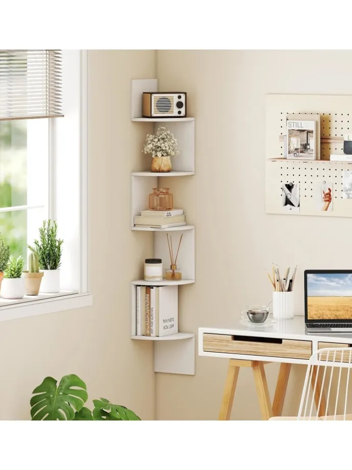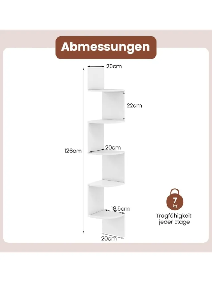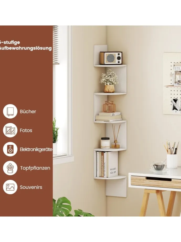 Platzsparende Ergänzung für kleine Räume dank des Eckregaldesigns