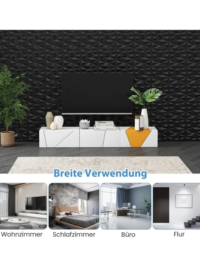 Aus hochwertigem, feuerbeständigem PVC gefertigt, sind diese dekorativen Paneele nicht nur langlebig, sondern auch pflegeleicht. Stellen Sie sich die Möglichkeiten vor mit 50 schicken, diamantgemusterten Fliesen, die Sie nach Belieben bemalen, schneiden und anordnen können. Verwandeln Sie in wenigen Minuten jeden Raum von trist zu fabelhaft, sei es Ihr Wohnzimmer, Schlafzimmer oder Büro. Decken Sie eine beträchtliche Fläche mit Ihrer künstlerischen Vision ab und machen Sie ein mutiges Statement.