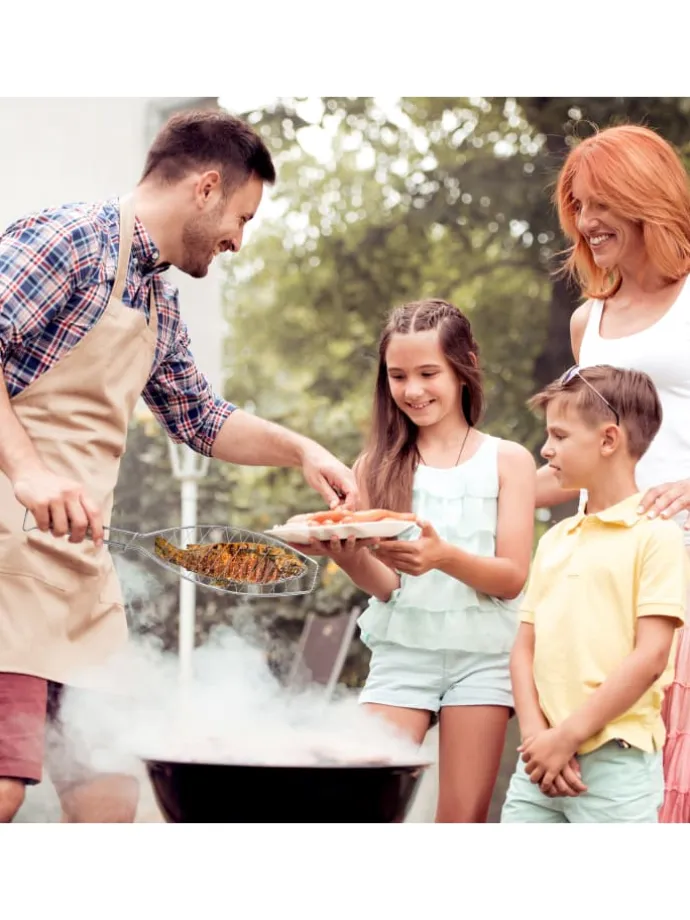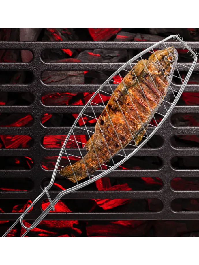Mit dem Fischbräter im 6er Set wird das Grillen von Hering, Barsch, Dorade und Co. zum Vergnügen. Klappe den Fischwender einfach auf und lege das Grillgut ein. Dank des Metallrings ist die Fischgrillzange sicher verschlossen und Du kannst den Fisch leicht am Griff über dem Grill wenden. Nutze die Fischhalter auch für Gemüse oder Meeresfrüchte. Die Fisch-Grillhalter sind aus rostfreiem Edelstahl und nach der Verwendung schnell gereinigt. Ideal für gesellige Grillabende mit Freunden und Familie.