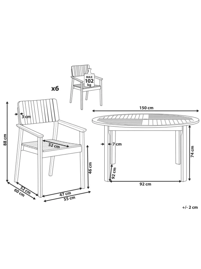 Sie kaufen: 1 x Tisch, 6 x Stühle