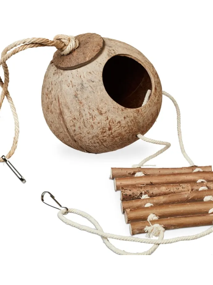 – Mit Kokosschale, Sitzstange, Schaukel, Glocken uvm.