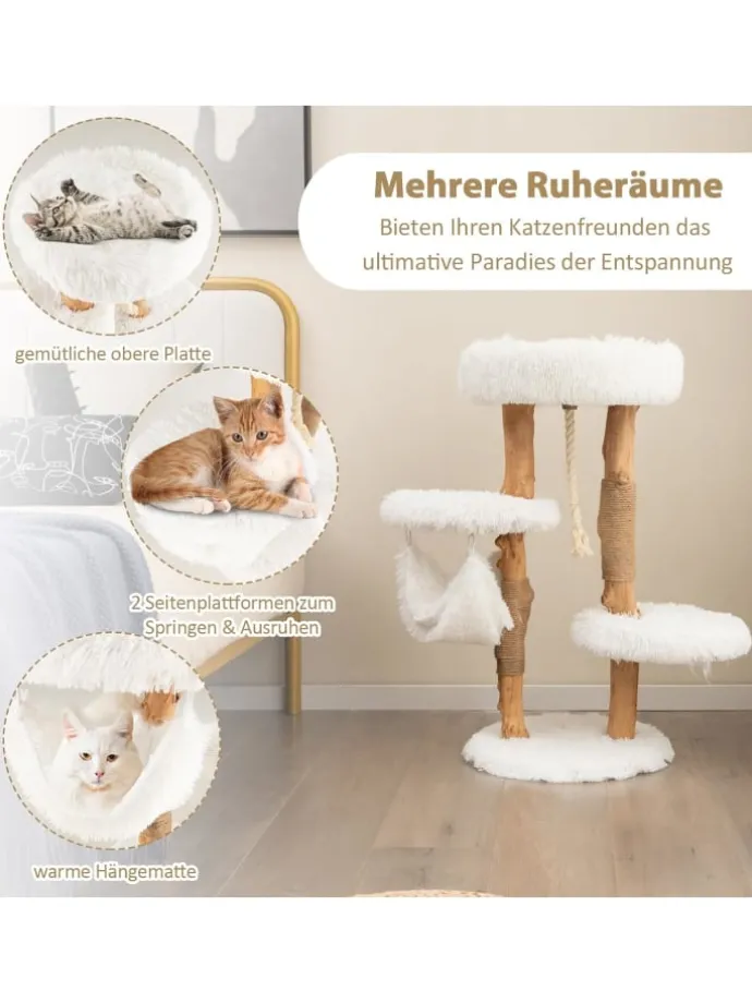 Jeder tragende Holzstamm ist ein Unikat, daher kann die Form des Kratzbaums leicht von den Bildern abweichen