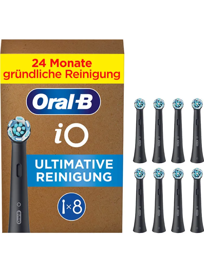 – Einfache Lieferung: 8 Oral-B iO Black Ultimative Reinigung Aufsteckbürsten in briefkastenfähiger Verpackung
