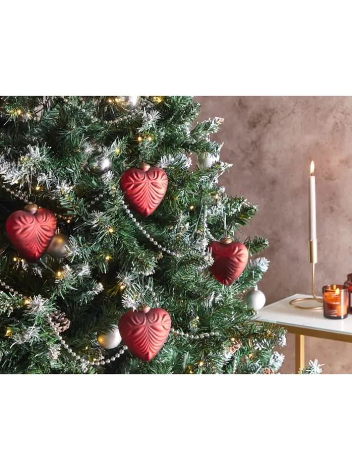 8 handgefertigte Glaskugeln in Herzform für den Weihnachtsbaum. Verleihen Sie Ihrem Weihnachtsbaum einen liebevollen Touch mit unserem herzförmigen Baumschmuck. Diese Glaskugeln sind mit Präzision handgefertigt und verfügen über eine strukturierte Oberfläche sowie eine edle Antik-Optik, die ihnen einen angesagten Vintage-Look verleiht. Um Ihnen den Gebrauch zu erleichtern, sind die Christbaumkugeln mit festsitzenden Käppchen versehen.