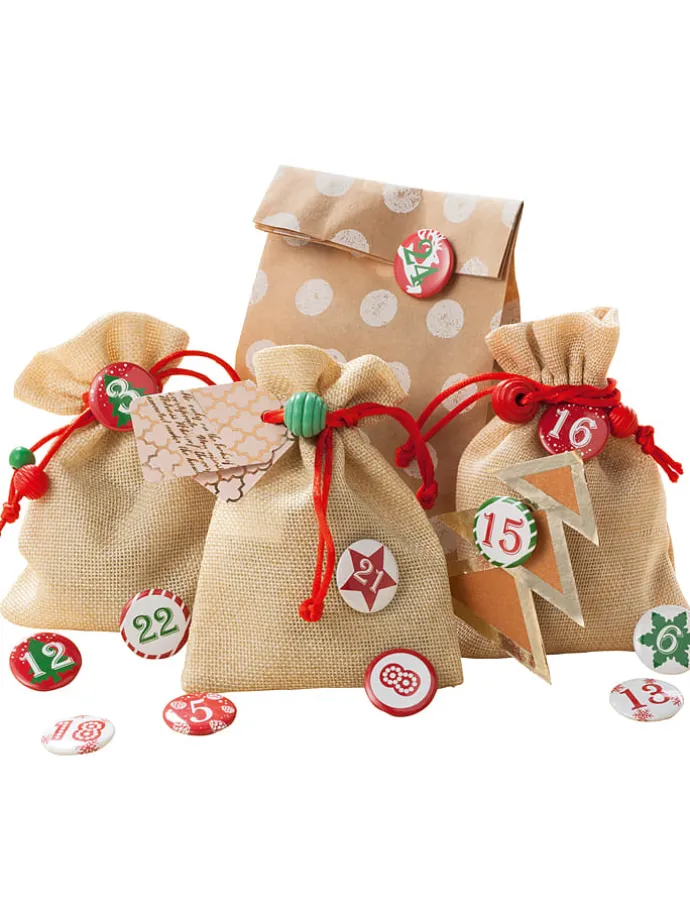 – mit Zahlen 1 – 24 und weihnachtlichen Motiven bedruckt
