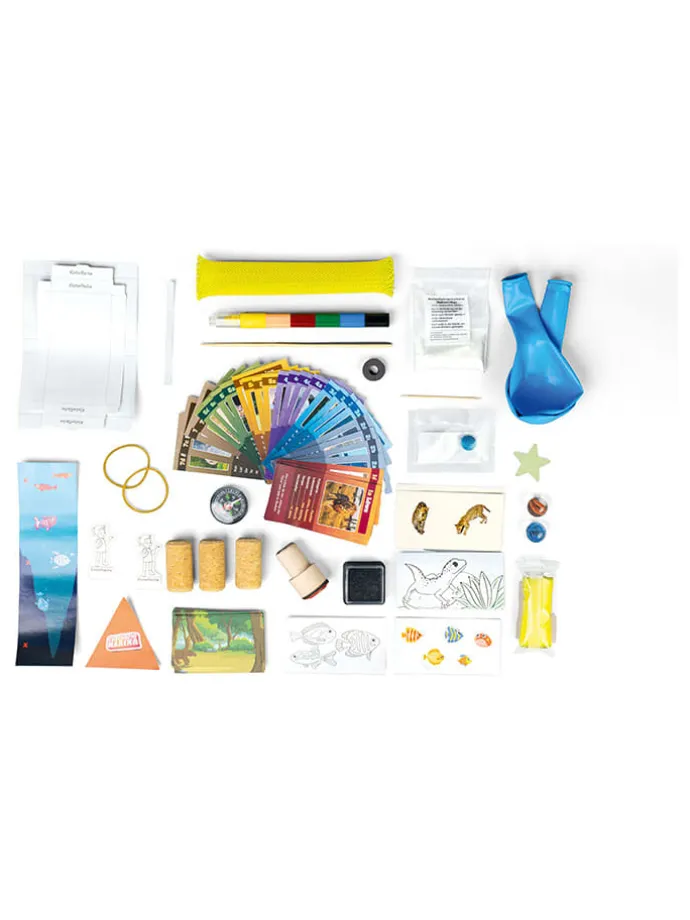 – Inhalt: verschiedene Utensilien zum Experimentieren wie Knetmasse, Magnete und mehr, ca. 20 Quartettkarten zum Sammeln und Spielen
